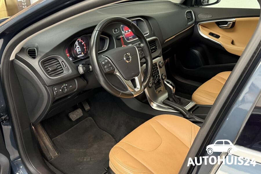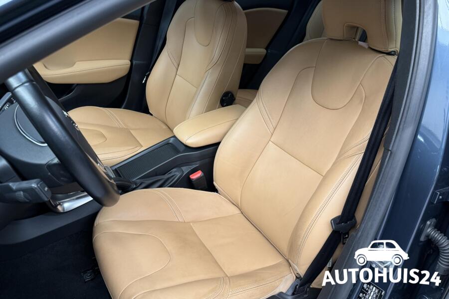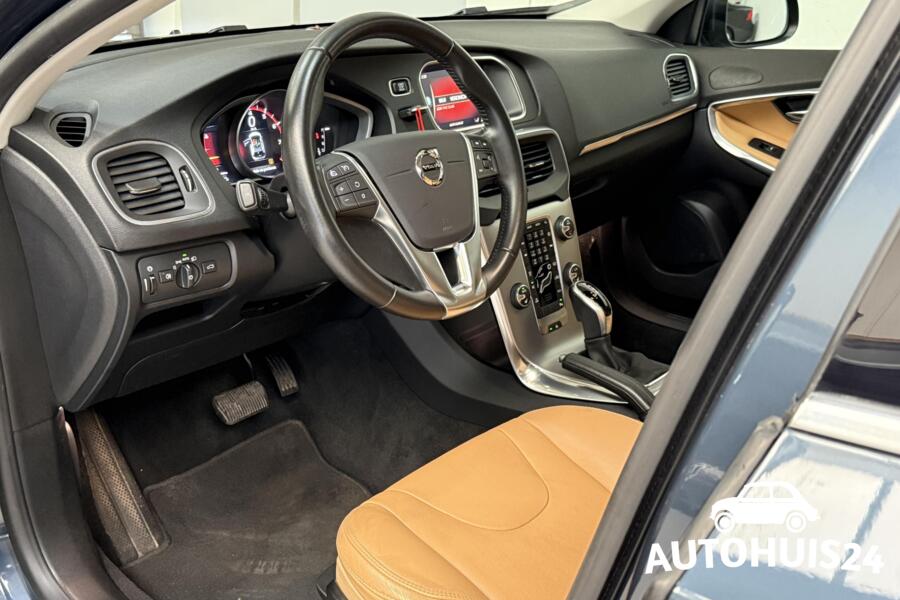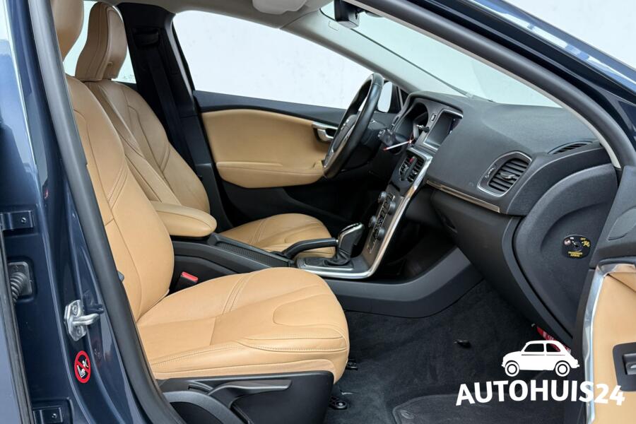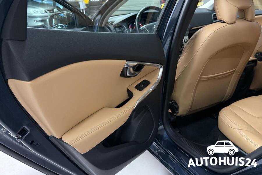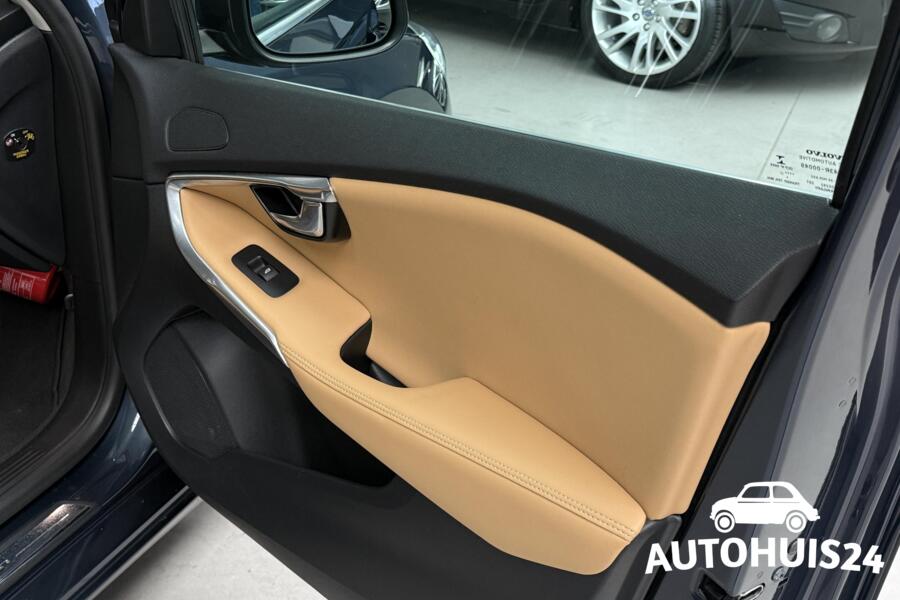 Prachtig smaakvol exemplaar! Denim Blue metallic met een prachtig Amber kleurig vol lederen interieur. Zo kom je de V40 weinig tegen! Dit mooie exemplaar van modeljaar 2018 (nieuwe en laatste facelift) is nieuw geleverd aan de eerste eigenaar in België. Wij hebben de auto naar Nederland gehaald en reeds voorzien van een NL kenteken. Echt een fraai exemplaar, volledig onderhouden en staat op 4 nieuwe banden met nieuwe gepoedercoate velgen (dus helemaal schadevrij). Een erg mooi exemplaar.