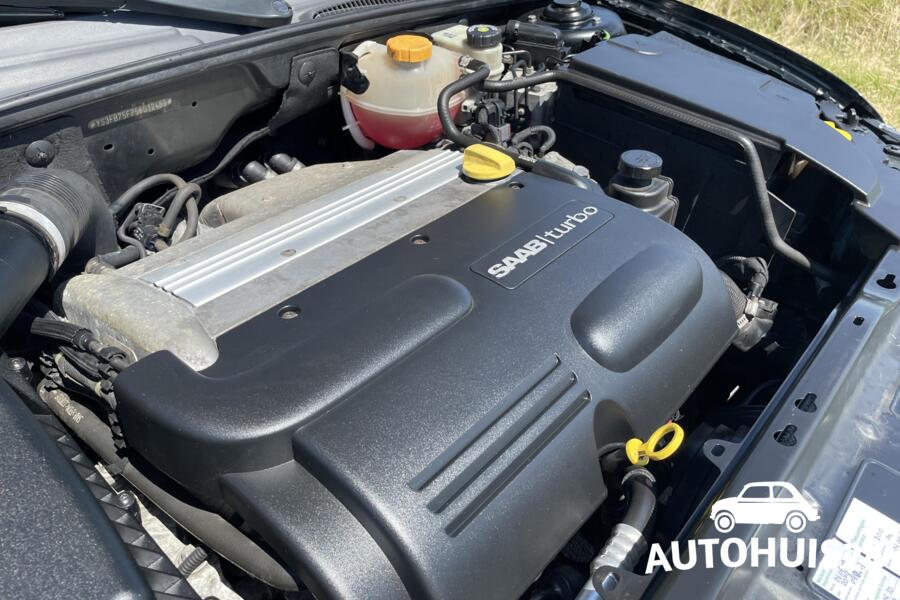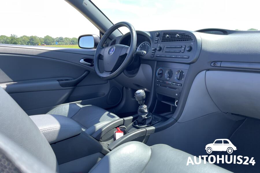 Deze in kleurnummer 170, Black Solid uitgevoerde cabriolet is uitgevoerd in de Linear-trim. Linear staat bij Saab voor ingetogenheid. Zo heb je wel alle moderne luxe aan boord welke je nodig hebt, zonder dat hij extreem opvallend is. Van binnen vind je een mooi grijs lederen interieur met goed verstelbare stoelen met stoelverwarming. Beide zetels zijn tevens in hoogte verstelbaar. Ook cruise control en airconditioning is aan boord. De Saab 70watt audio met 4 speakers geeft een fijn geluid, tevens is er een originele cd-speler gemonteerd.